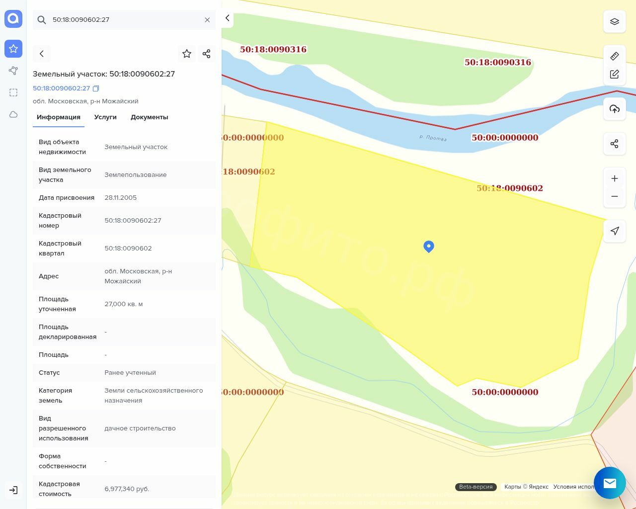 Лот № 1. Земельный участок, кадастровый номер: 50:18:0090602:27. Категория земель: земли сельскохозяйственного назначения, разрешенное использование: дачное строительство, общая площадь 27000 кв. м.