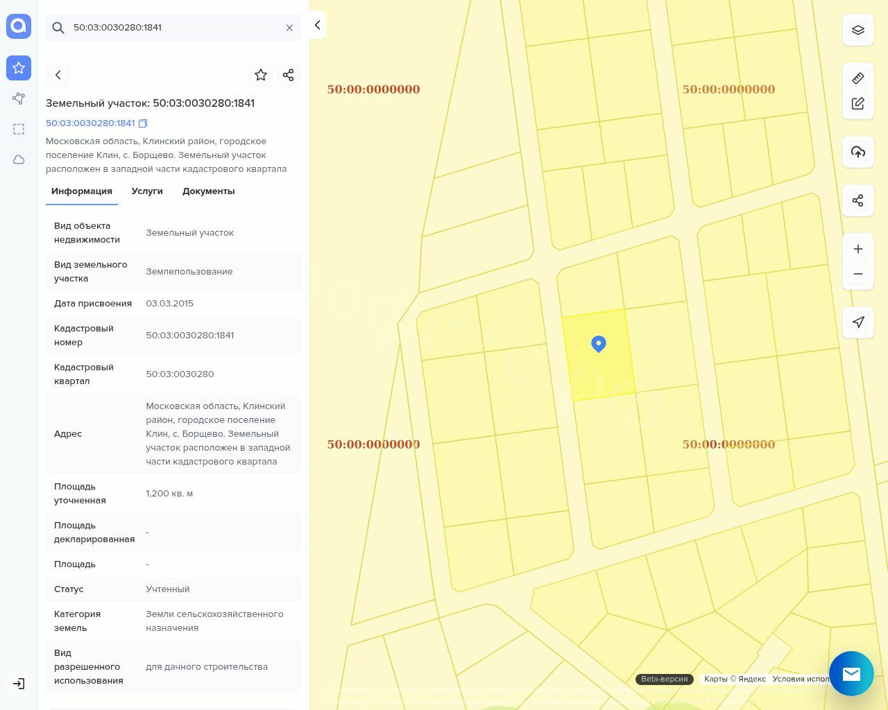 Земельный участок, к.н. 50:03:0030280:1841, пл. 1200+/-24 кв.м.