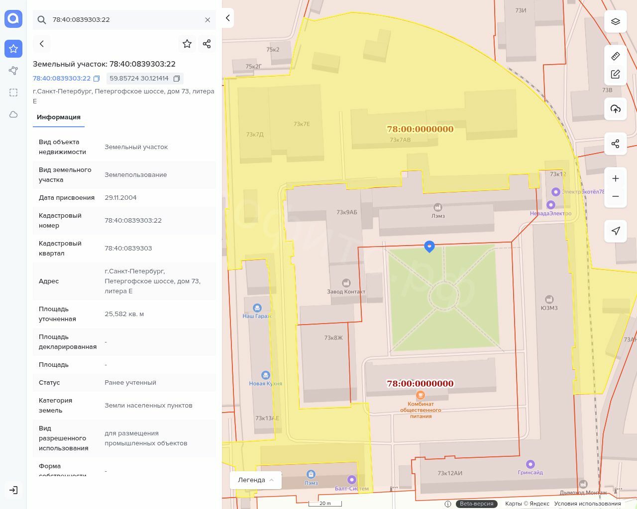 5. Земельный участок, кадастровый № 78:40:0839303:22, площадью 25582 кв. м, категория: земли населённых пунктов, вид разрешённого использования: для размещения промышленных объектов, адрес: г. Санкт-Петербург, Петергофское ш., д. 73, литера Е и расположенные на участке нежилые здания: Здание корпус № 2, кадастровый № 78:40:0839303:2018, площадью 1573,2 кв. м Адрес: г. Санкт-Петербург, Петергофское ш., д. 73, корп. 7, лит. Е;