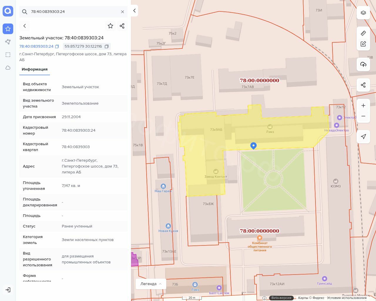 6. Земельный участок, кадастровый № 78:40:0839303:24, площадью 7147 кв. м, категория: земли населённых пунктов, вид разрешённого использования: для размещения промышленных объектов и расположенное на участке нежилое здание: Производственный корпус № 1, кадастровый № 78:40:0008336:3029, площадью 11503,8 кв. м Адрес: Санкт-Петербург, Петергофское ш., д. 73, корп. 9, лит. АБ. Ограничение прав и обременение: прочие ограничения прав и обременения объекта недвижимости: № 78-01-289/2004-602.2 от 10.12.2004 (публичное); № 78-78-01/0385/2008-425 от 14.07.2008 (публичное); № 78-78-01/0385/2008-426 от 14.07.2008 (публичное); № 78-78-74/005/2013-379 от 17.10.2013; ипотека: № 78:40:0839303:24-78/011/2023-5 от 06.12.2023; № 78:40:0839303:24-78/011/2023-6 от 06.12.2023; № 78:40:0839303:24-78/011/2023-7 от 06.12.2023; № 78:40:0008336:3029-78/011/2023-5 от 06.12.2023; № 78:40:0008336:3029-78/011/2023-6 от 06.12.2023; № 78:40:0008336:3029-78/011/2023-7 от 06.12.2023.