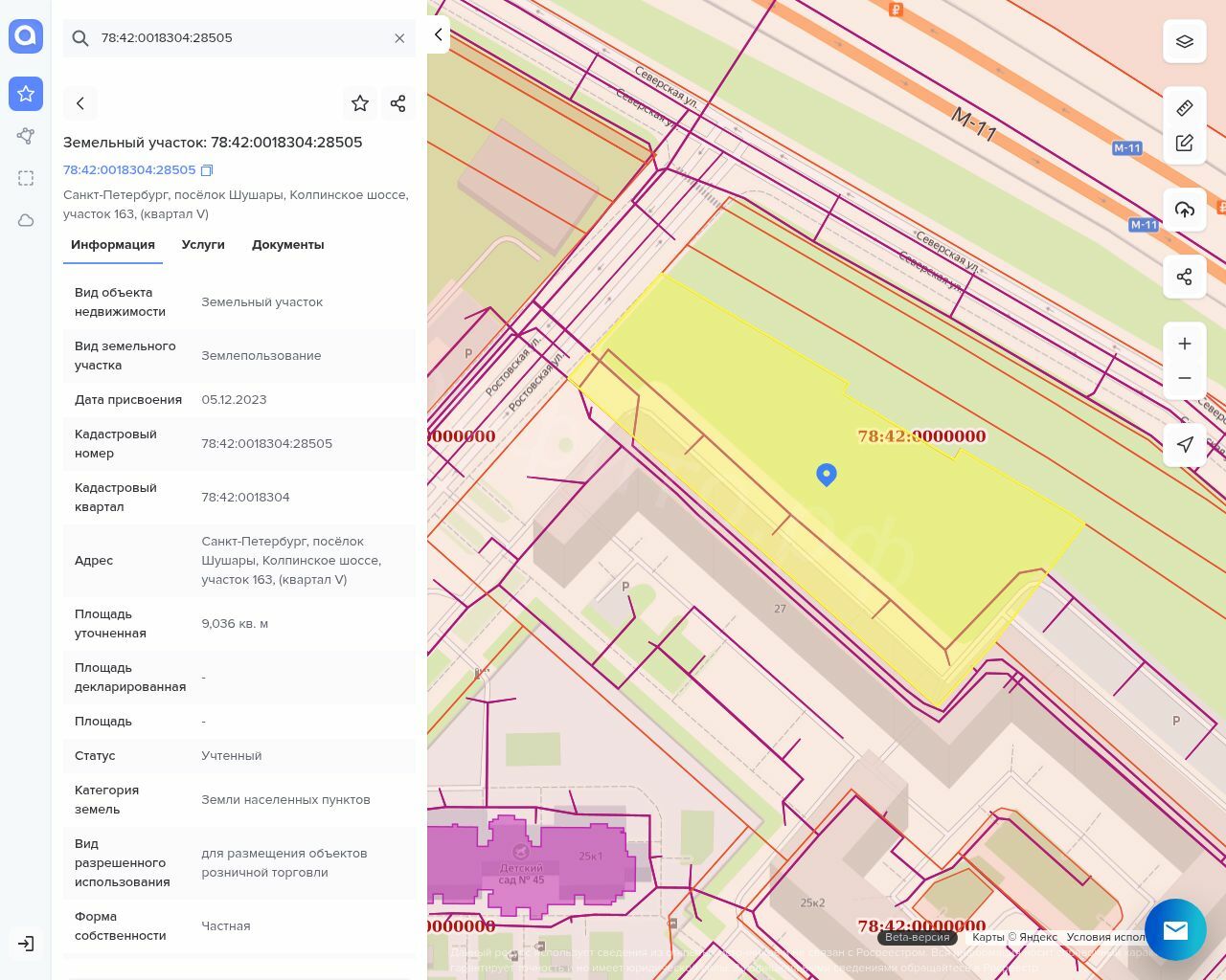 Земельный участок площадью 9036 кв.м., КН 78:42:0018304:28505