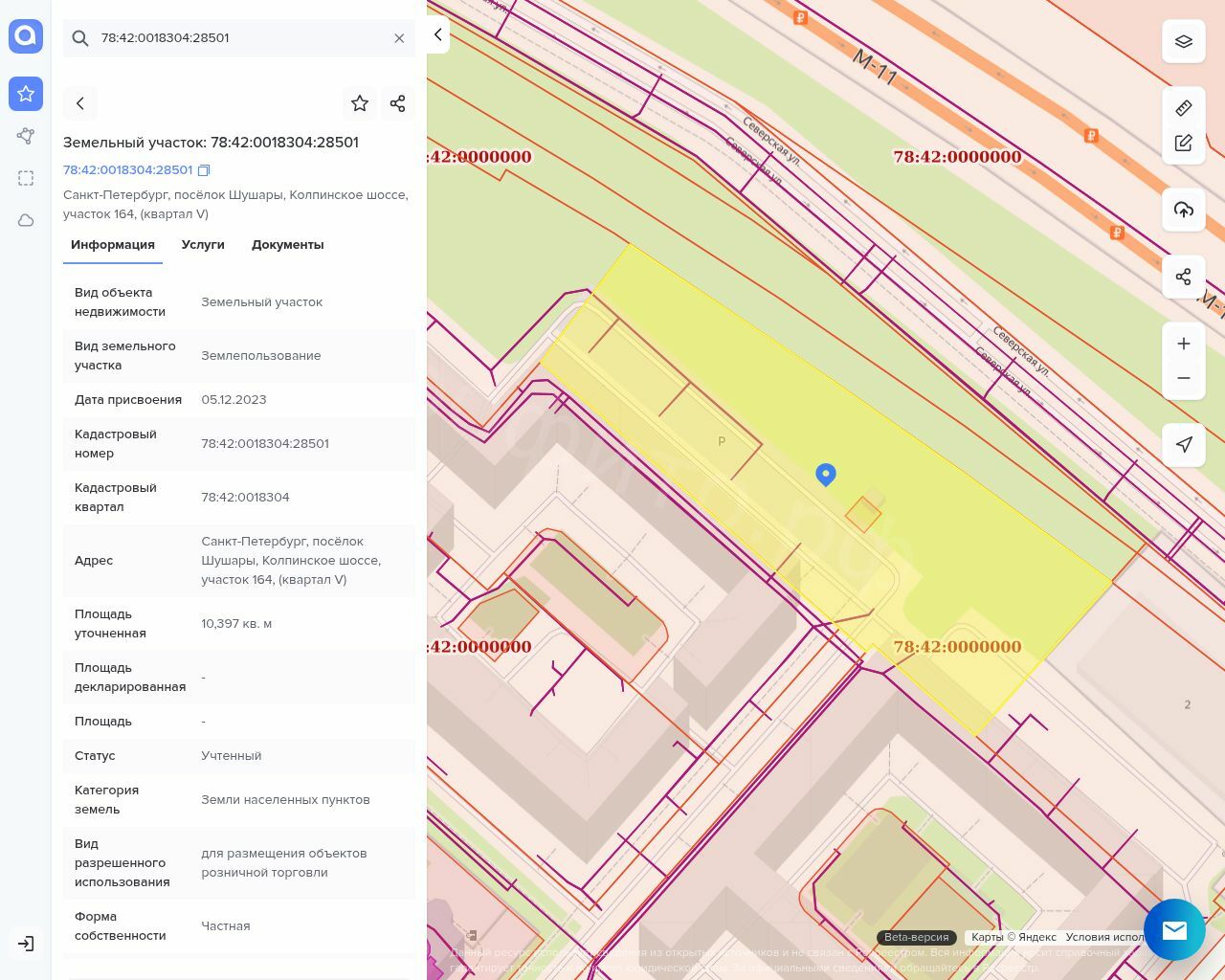 Земельный участок площадью 10397 кв.м., КН 78:42:0018304:28501