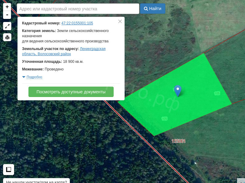 Земельный участок Кадастровый номер: 47:22:0155001:105 Площадь 18900 кв.м.