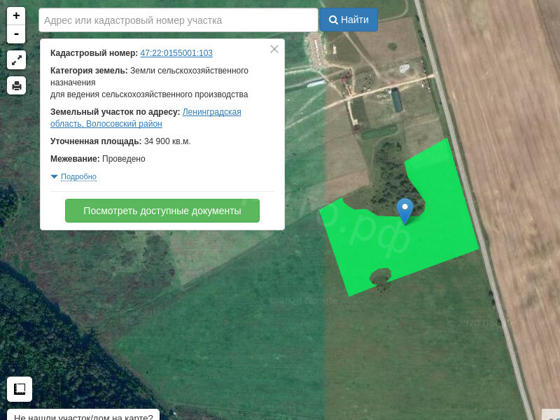 Земельный участок Кадастровый номер: 47:22:0155001:103 Площадь 34900 кв.м.